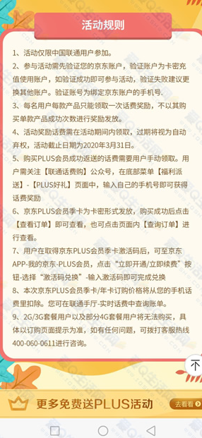 话费需要手动领取 在【联通话费购】公众号-【福利派送】-【PLUS好礼】页面领取话费奖励
