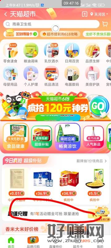 天猫超市 编一个广州地址 冲9块额外送12猫卡
