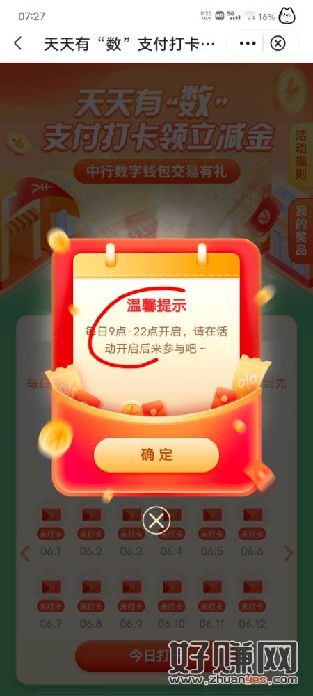 中国银行APP 限湖南分行 生活 数币专区 天天打卡领立减金