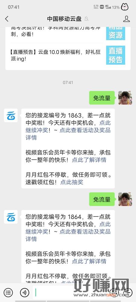 #公众号:中国移动云盘 发送 免流量