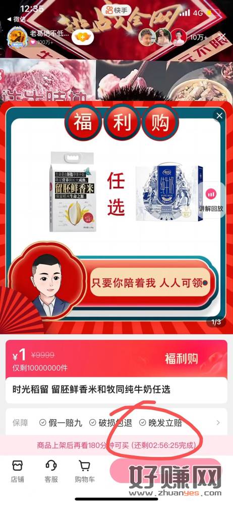 快手app,去老葛绝不低头 直播间,挂机3小时,1元买一袋大米或者一箱牛奶,之前玩的亲测发货,多号多挂