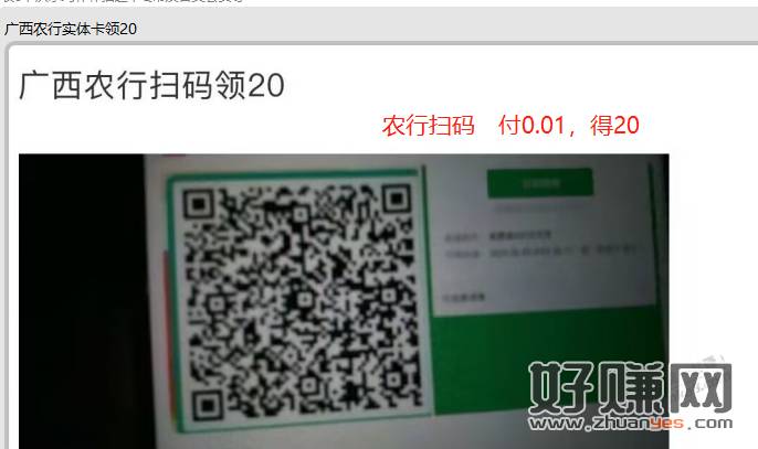 扫 付0.01 得20 要广西农行卡。二类不知道行不行 广西老铁上