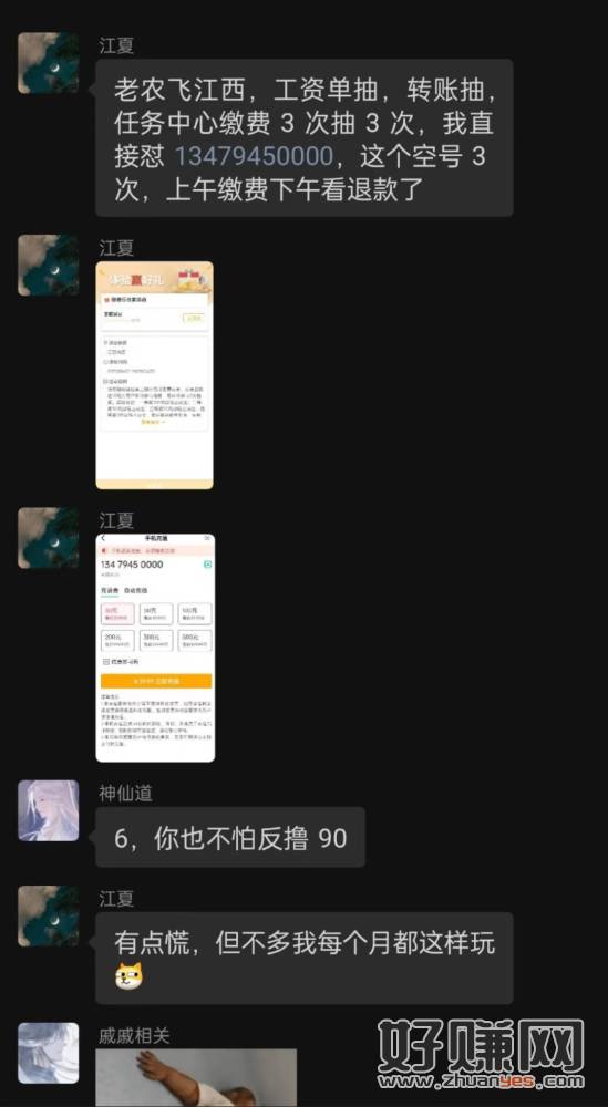 农行飞江西,工资单,转账,缴费任务,共3个,缴费任务缴这个空号13479450000,一般一小时左右退款。