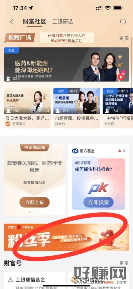 工行搜财富社区,横幅粉丝季,抽了三天0.2,下面有人先发了,这里面是全部的