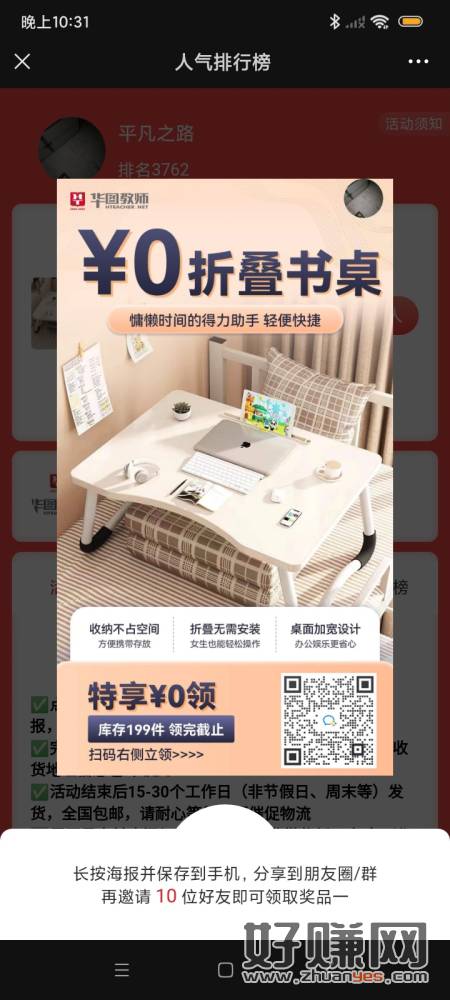 懒人有福了,只要邀请10人加企微就能领一t 懒人书桌,有头介意勿扫。别骂我,我找不到微信号,所以才放有头的二维码
