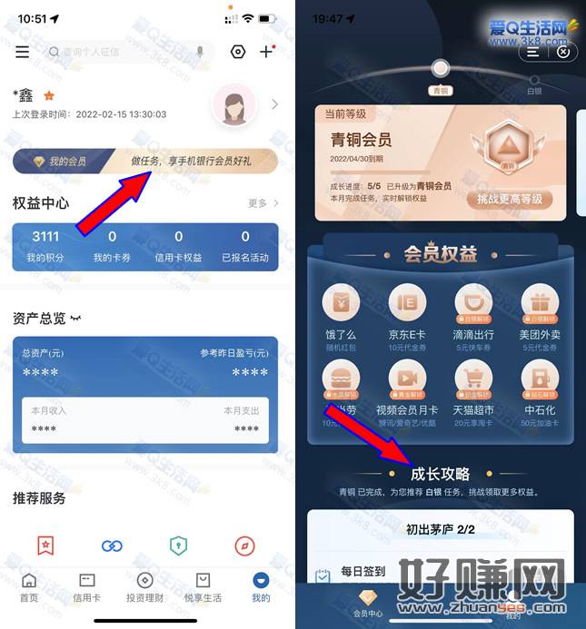1.建设银行APP-我的-我的会员-成长攻略