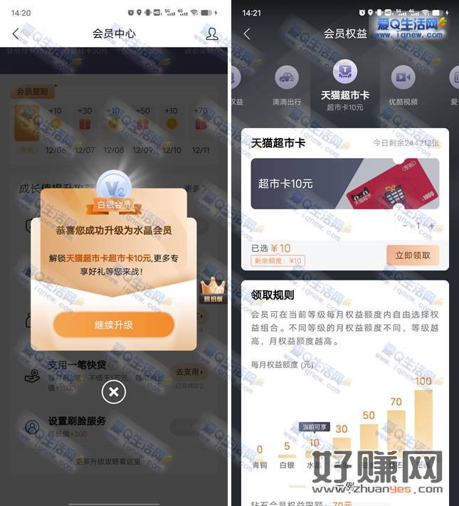 会员中心更新了,完成任务到水晶会员领10元猫超卡,很简单