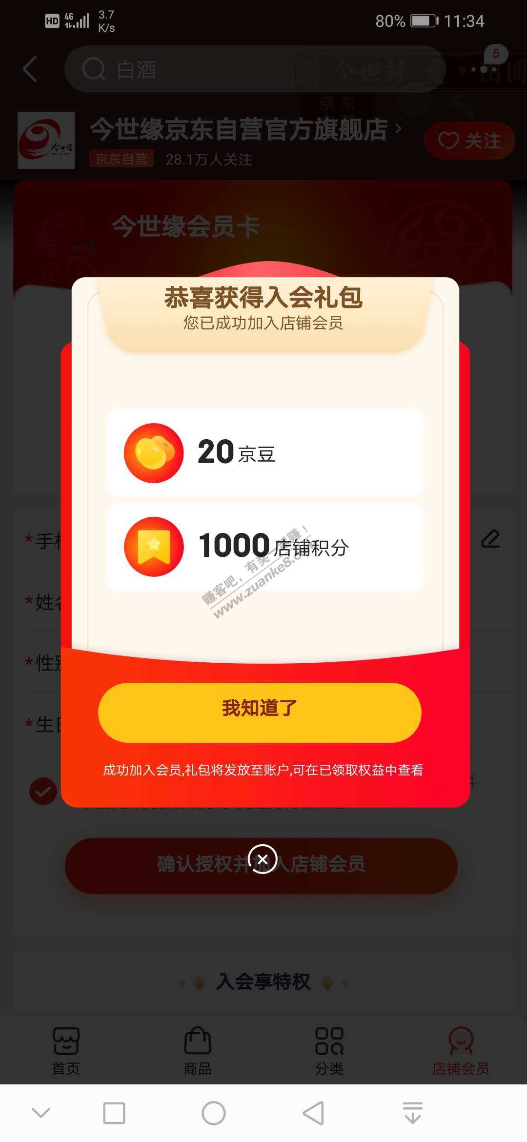 加入会员一共120个京豆
