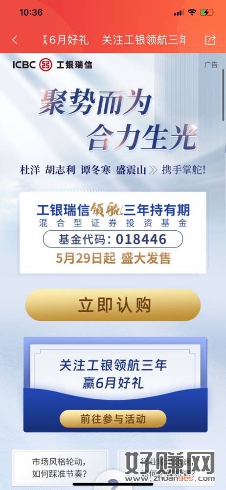 直接登录,首页轮播图片进入“关注工银领航三年赢6月月度礼遇”活动。