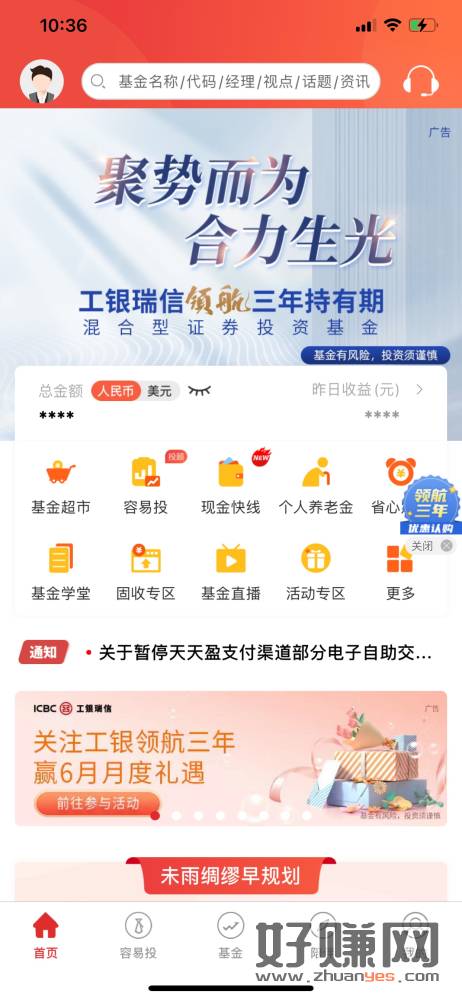 工银瑞信基金app更新信息得zfb红包,最低5最高20
