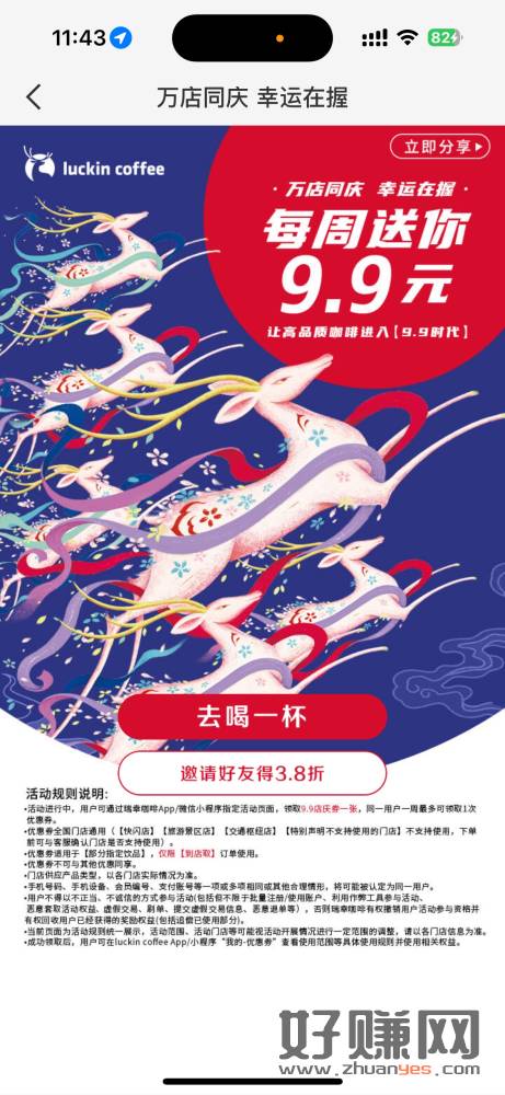 瑞幸9.9一杯周年庆