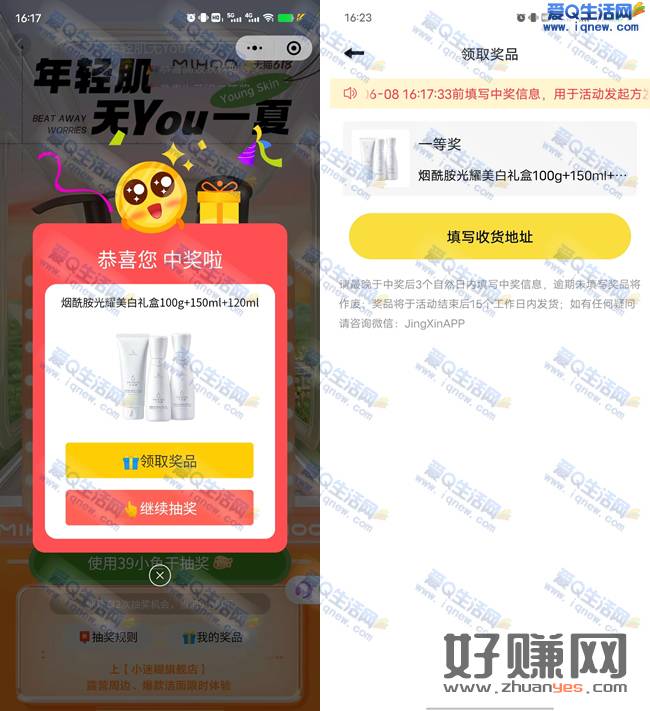 实物在鲸心APP-我的-热门活动【年轻肌无you 一夏】里点击奖品兑换