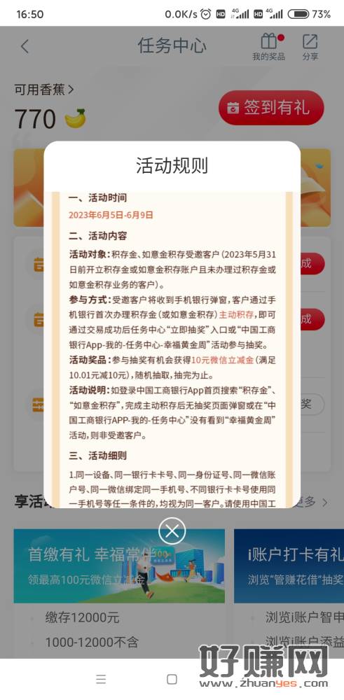 工行任务中心主动积存抽10立减金,抽奖后去撤销,不要主动赎回会扣手续费。