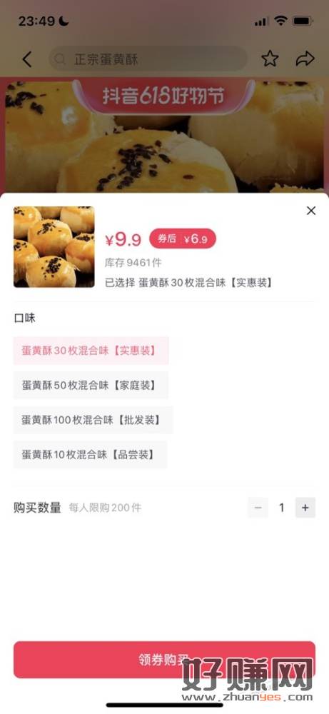 页面点入会有个三元无门槛券,买30个6.9包邮