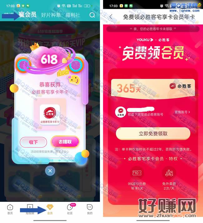 优酷开惊喜盒子赢优酷VIP 亲测中必胜客宅享卡年卡