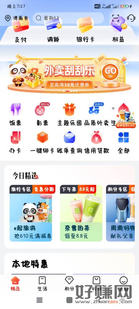 刚才工银e生活那个首页外卖刮刮乐活动刮,外卖现金券,能用借记