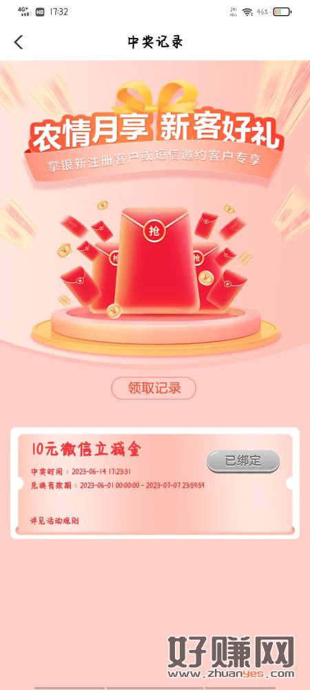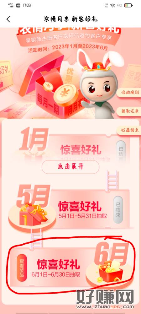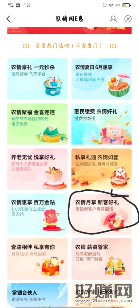 飞农行福建(非厦门)掌银用户,城市专区改福建随便一个城市,点击农情闽e惠 往下拉 找到浓情月享 新客好礼 10r