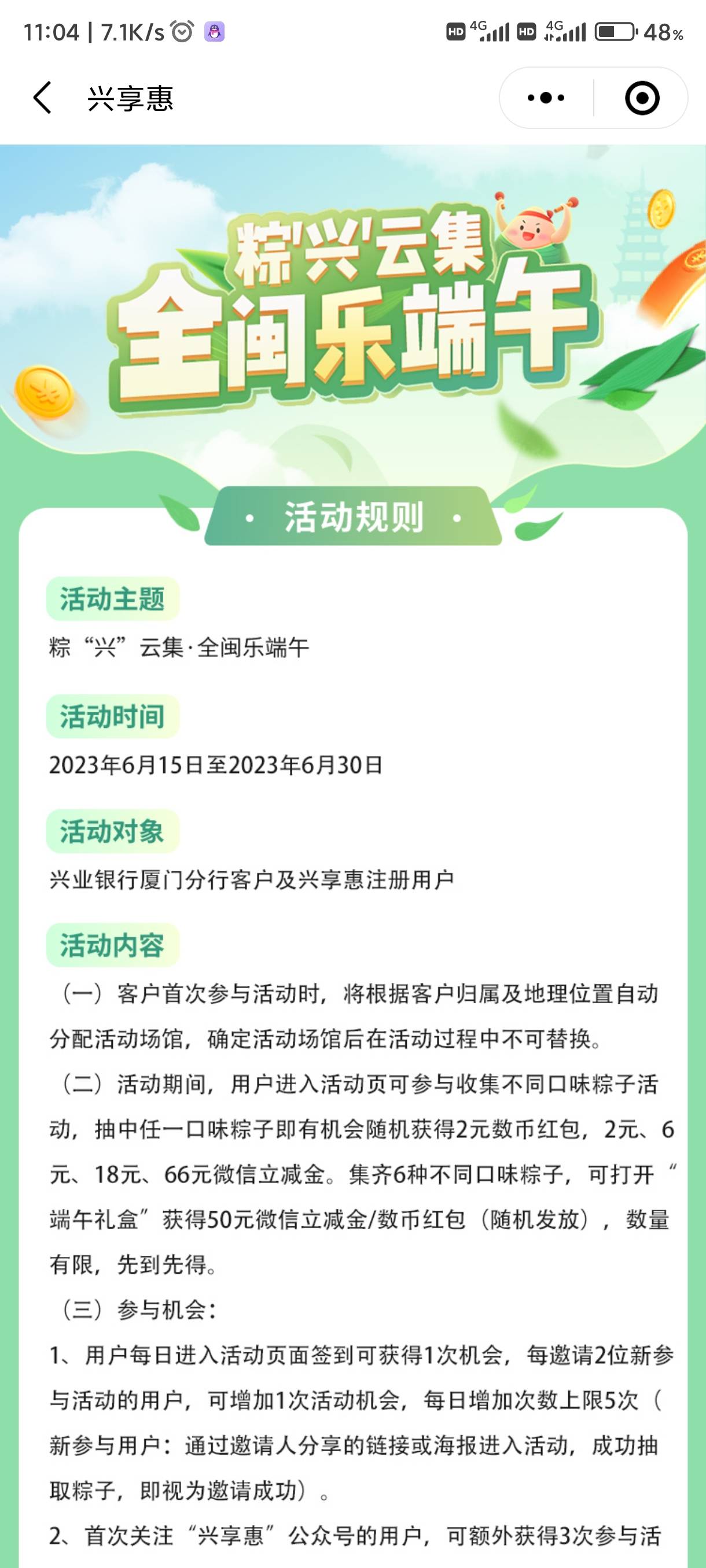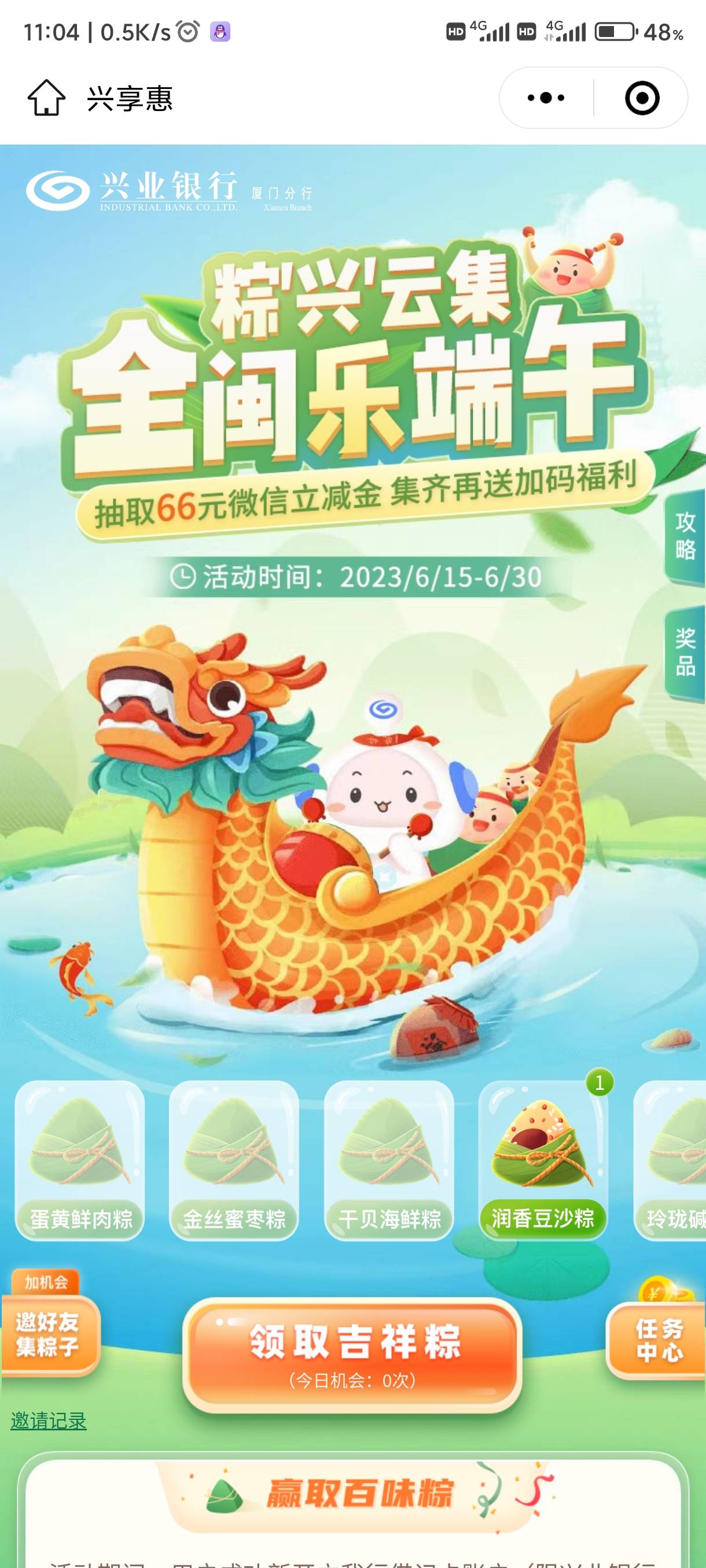 兴享惠端午活动集齐6个不同的粽子拿50立减或者50数币
