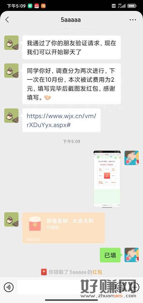 问卷2元粗暴,加他等通过发问卷链接给你,问卷乱填慢一点