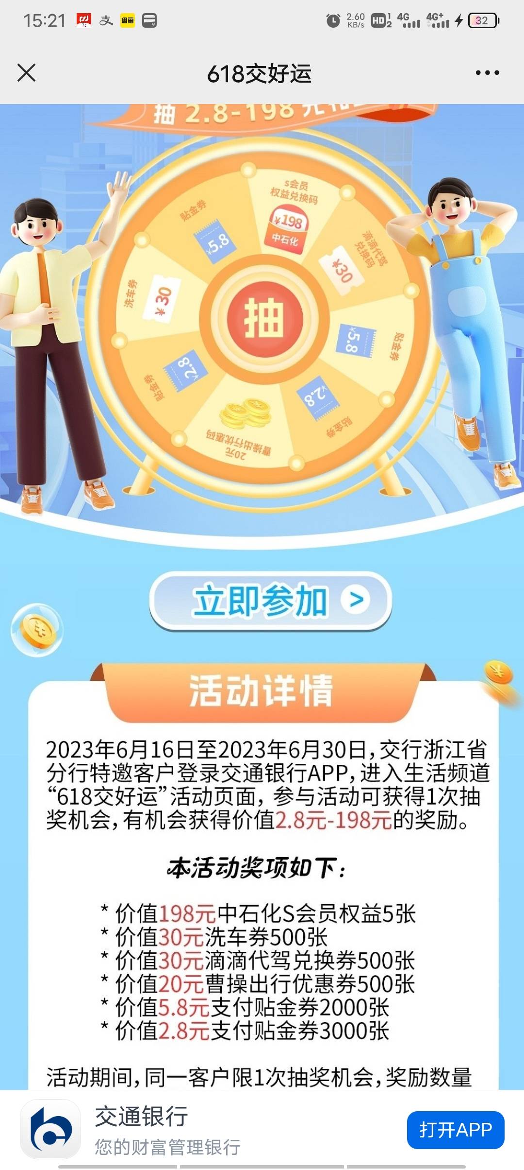 交通浙江抽奖, 有浙江卡的或开过浙江养老账户的老哥们冲,中了两张曹操出行 一个14出了