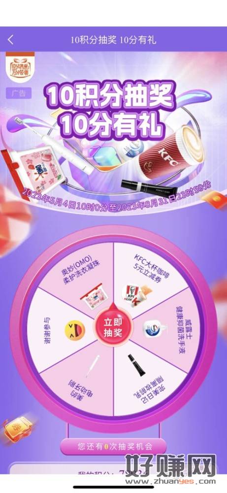 邮储积分抽奖3中1