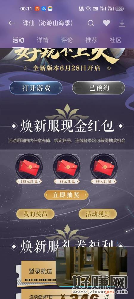 OPPO游戏中心搜索诛仙下载打开,返回抽奖,昨天中过的今天打