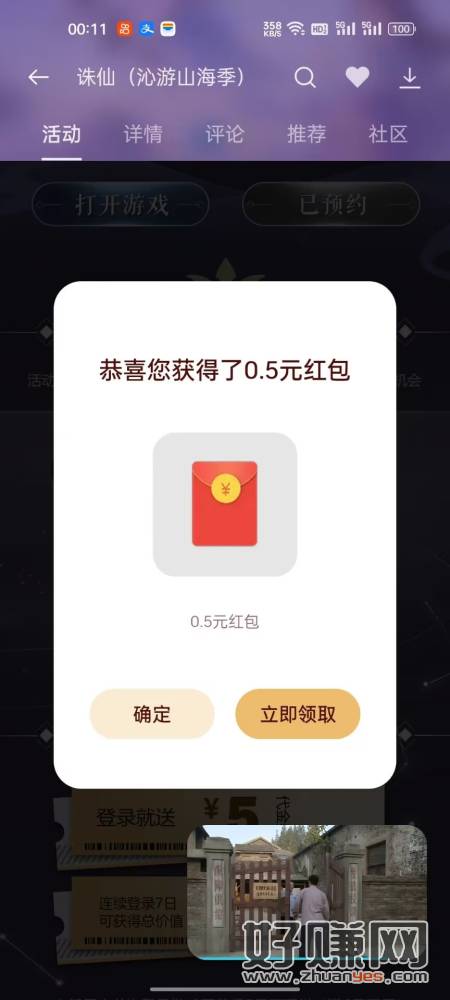 OPPO游戏中心搜索诛仙下载打开,返回抽奖,昨天中过的今天打开一次还可以中