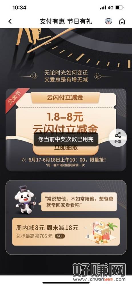 支付宝领4~6元付款红包