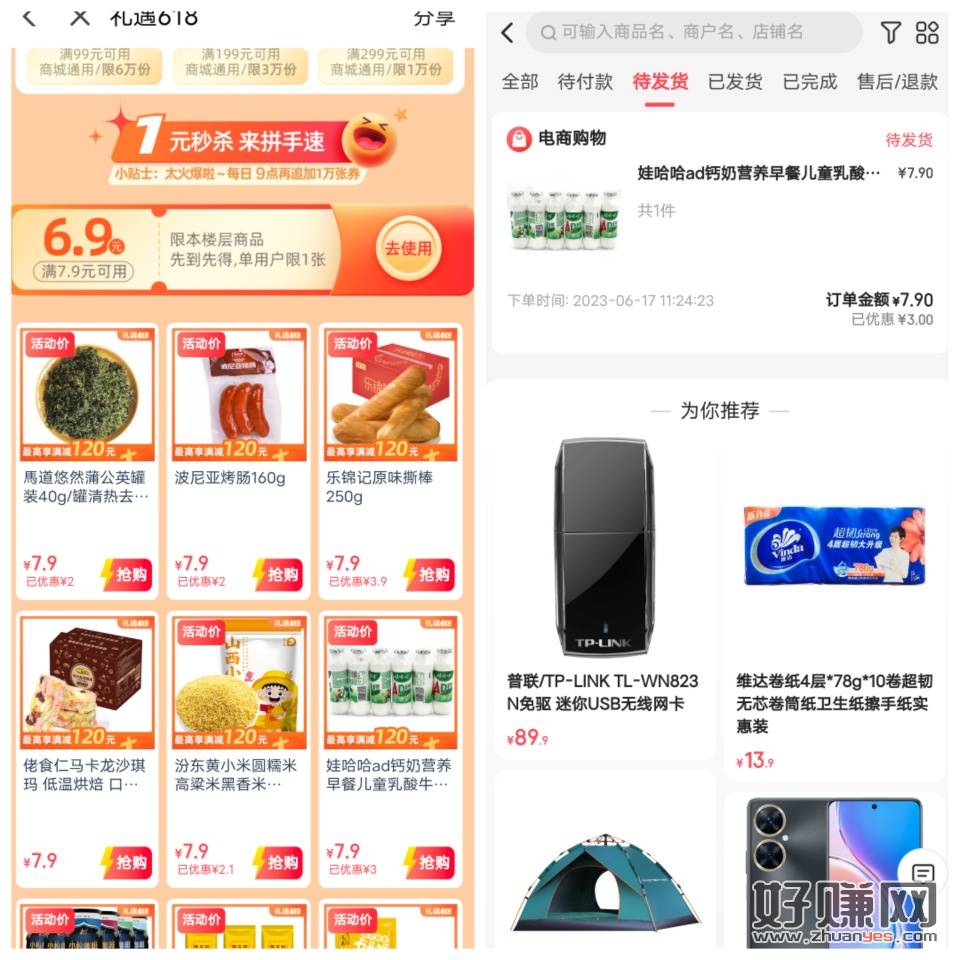 翼支付首页1元秒杀,支付显示立减,1元6瓶奶奶