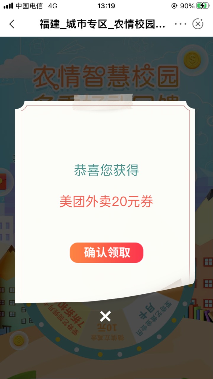 农行,城市专区,福州,智慧校园,最下面横幅抽奖,基本现在都是20美团,我没飞!停机广东的