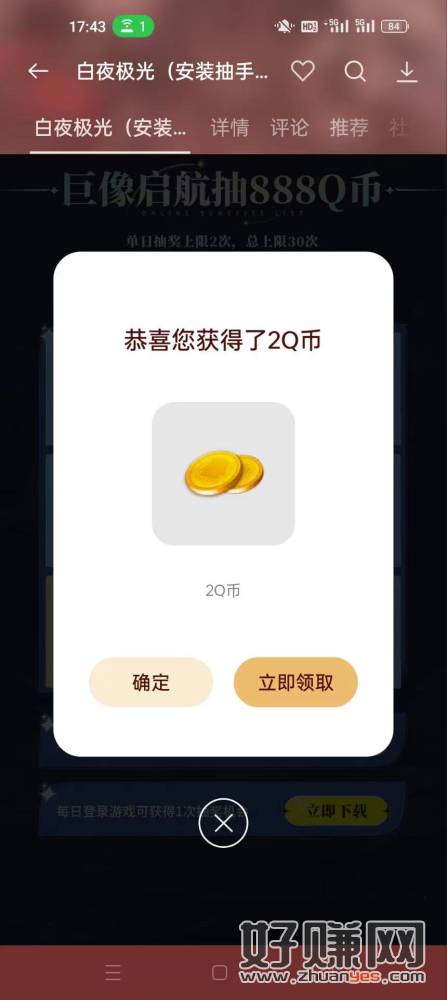 oppo游戏中心搜白夜极光,完成任务抽奖