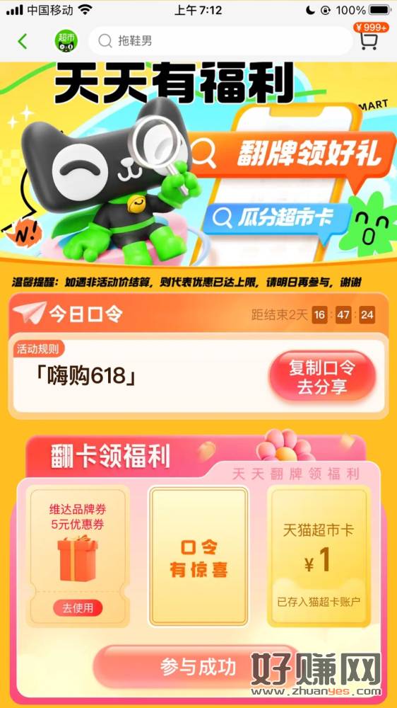 口令:嗨购618、光大618、云闪付福利、、618小绿袋