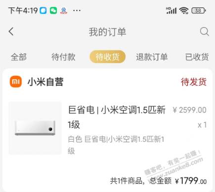 买小米1.5P的一级能效空调到手1649
