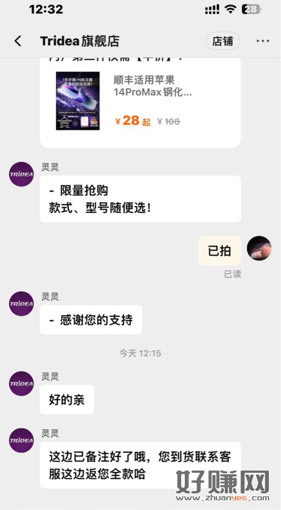 进群联系客服,参加0元购活动,到货全返,上一次买的手机壳已经