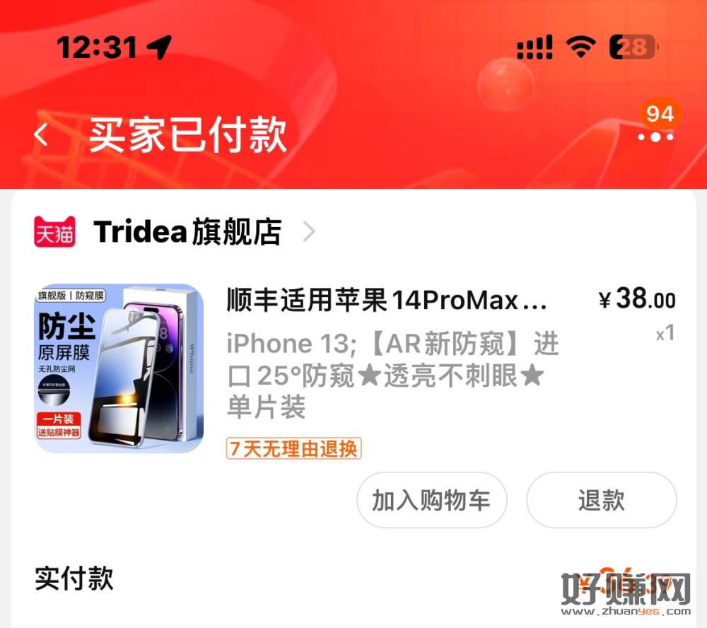 进群联系客服,参加0元购活动,到货全返,上一次买的手机壳已经反了,这次是钢化膜,安卓没有,只有苹果。