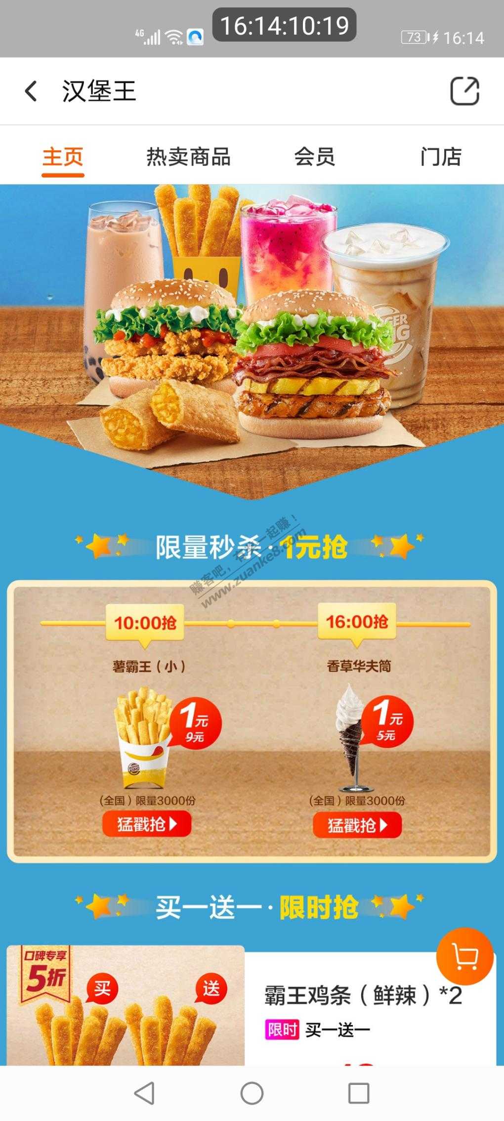 口碑app搜汉堡王进主页就能看到下午4点1元华夫筒限量3000份,手慢无,抢到的彦祖们赏个果