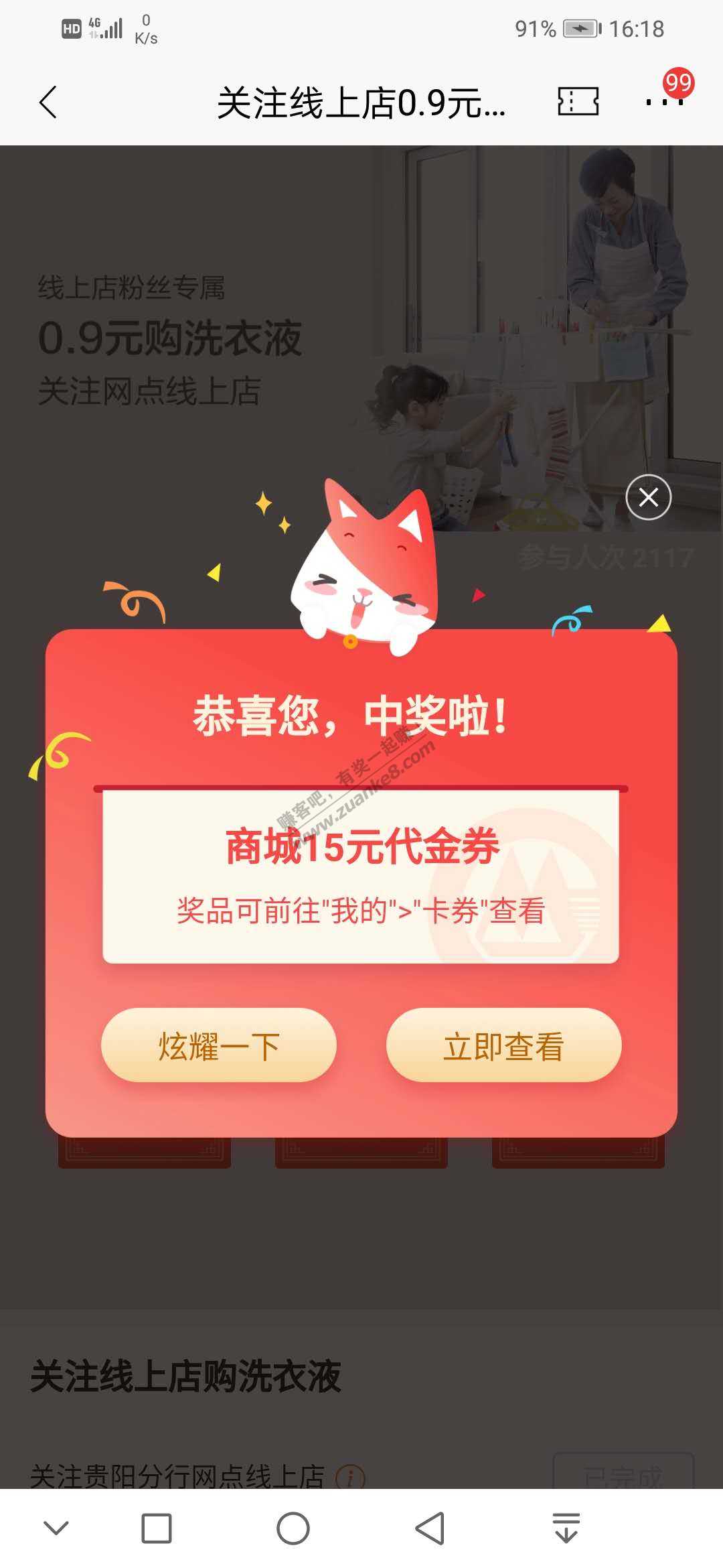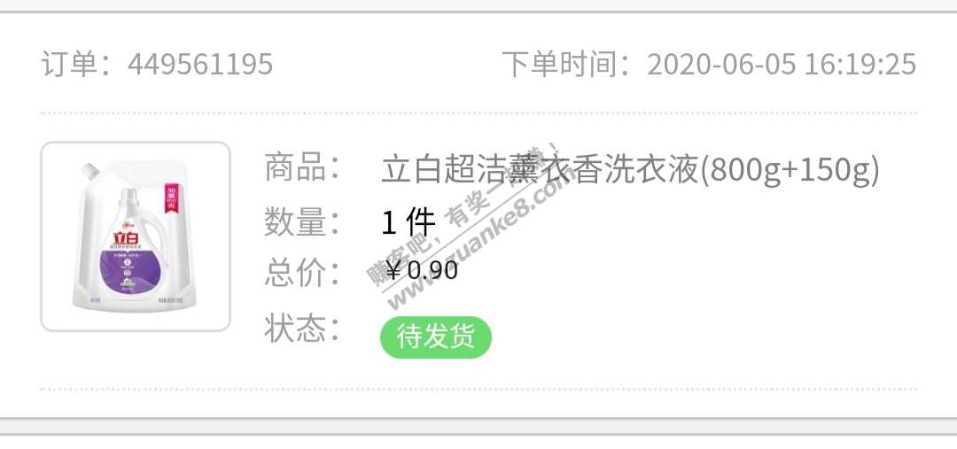 直接APP扫码,中了15元券的话,点击立即使用,可以9毛钱买950g的洗衣液