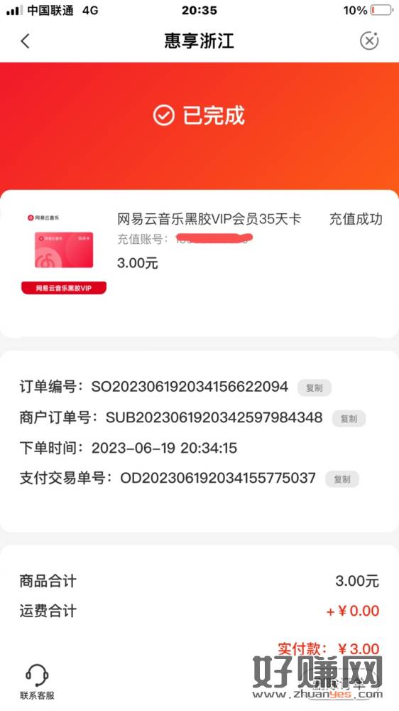 粗暴,农行飞浙江,惠享浙江,找到 3 元购网易云 35 天,是直充!!!!不是卡券!!!!去玖玖代充接单后再购买!!!!充完截图上传凭证。5 元润