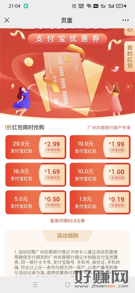 飞广州,微搜索珠江直销银行小程序进去开卡,开好卡去应用商店下载广州农商APP登录首页找到珠江直销银行进去认证一下设置一下快捷支付明天就能绑微信,直接去绑是绑不上的,首绑微6.6+gzh10,还有金米也能弄几毛然后再加上每天八点钟更新库存的83大毛,每个只能领一次,上连点器很好抢,还有月月刷,这个是83毛链接