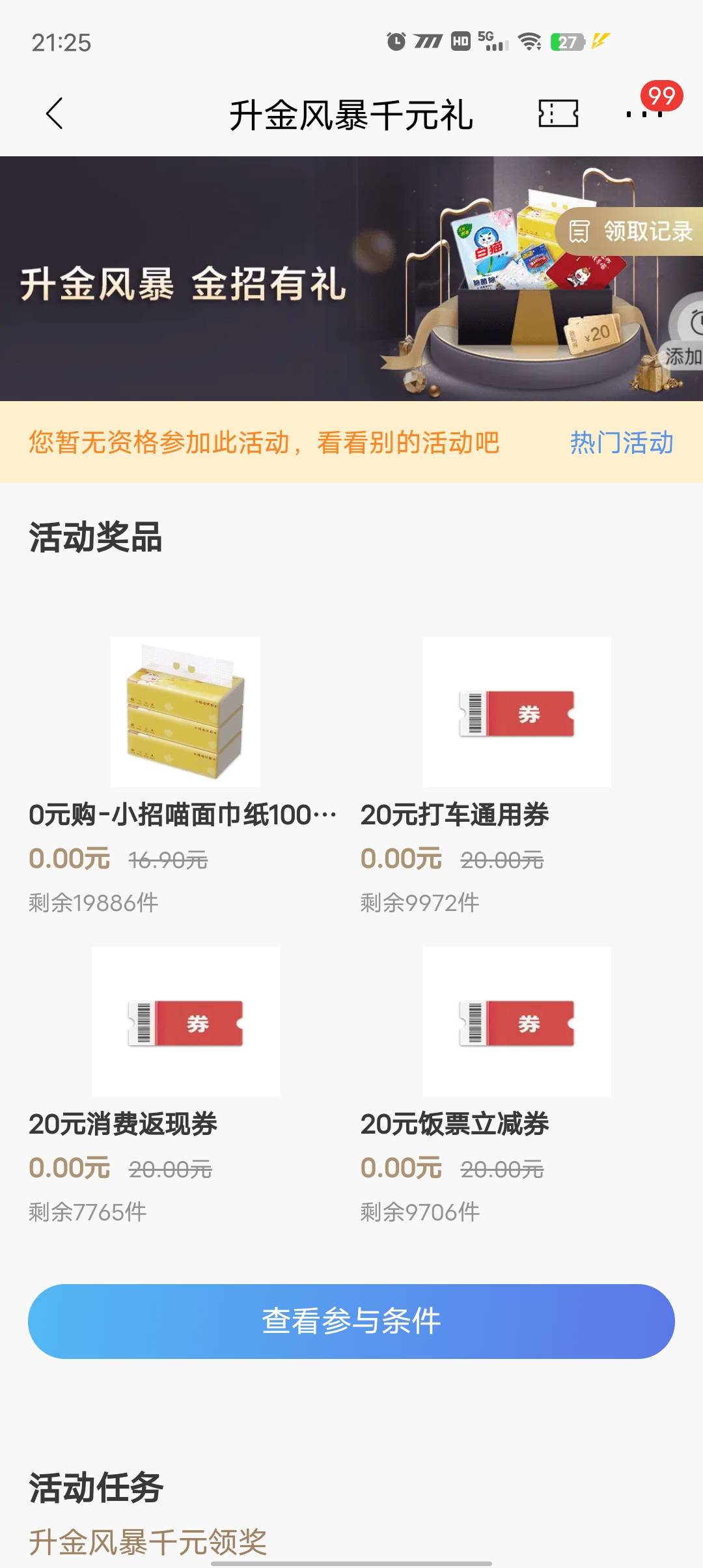 速度京东星夜红包雨入口 18.8 超市卡等