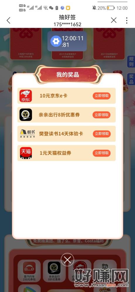 亲测15元猫超品类券 建行好运连连抽奖