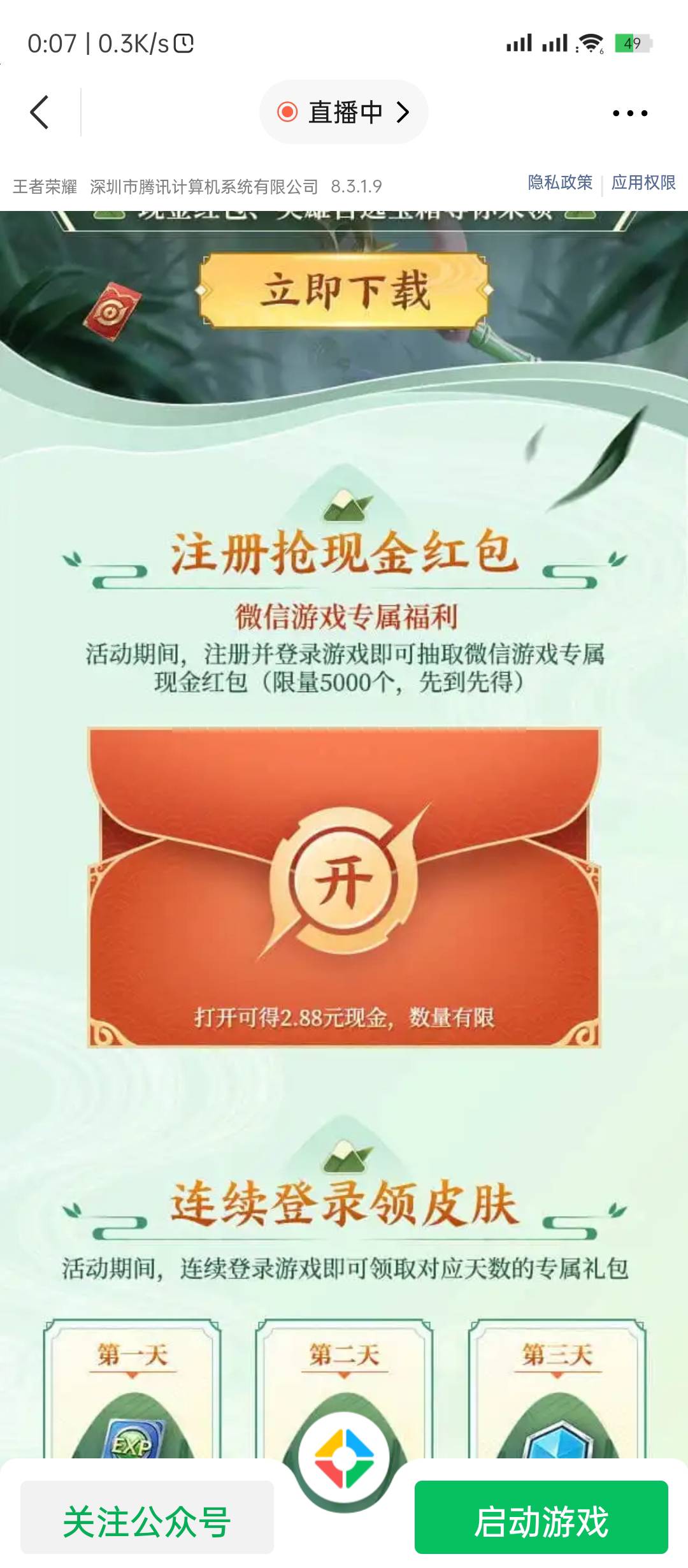 微信王者新用户2.88,老用户直接换区,有游戏的直接登录换区领取,都不用下载