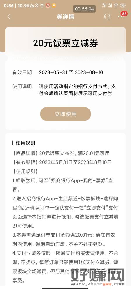 前几天招行没完成任务的(放1000)可以去领了,领20饭票,去买代金券,推荐买kfc