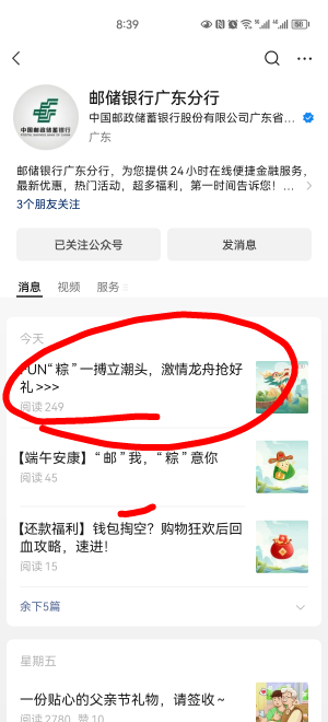邮储银行广东分行公众号 最新推文 好运苟冲 凡科 黑号W视