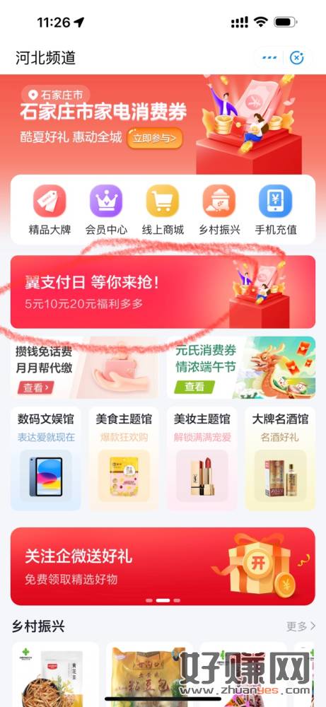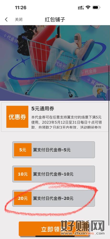 进去翼支付首页,点翼支付日秒杀,进去领20券,然后0元买东西。