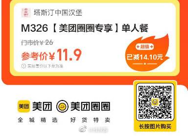 美团到店,塔斯汀中国汉堡,2个堡,9.9
