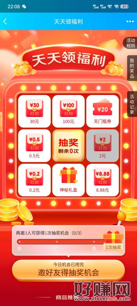 QQ钱包,不怕反撸的去,我反正是被反了,3个抽奖要3分钱
