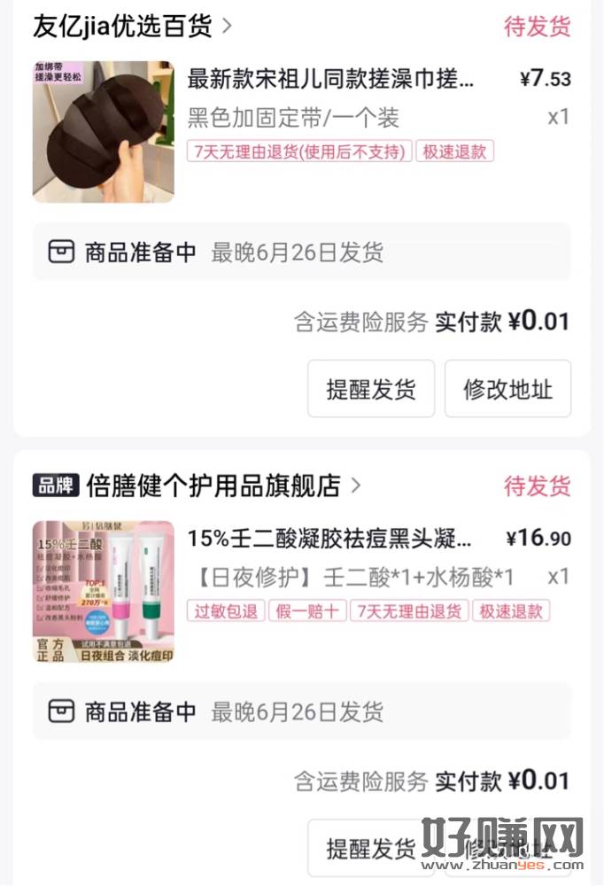 0.01下单搓澡巾和一只壬二酸+一只水杨酸。抖音扫码,领一张3元和10元支付卷,然后扫搓澡巾的码,用银行卡支付或月付0.01下单,扫壬二酸的码,用银行卡支付或月付0.01下单,之前我收到壬二酸的包裹的时候有好评返现2元,不知道现在还有没有,看得上的冲