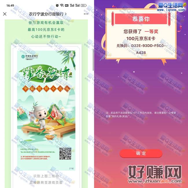 宁波农行掌银玩游戏抽100京东E卡 亲测100京东E卡秒到