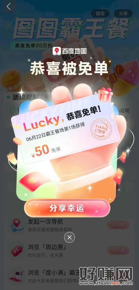 百度地图搜免单,邀请6个人助力,打卡三天就行